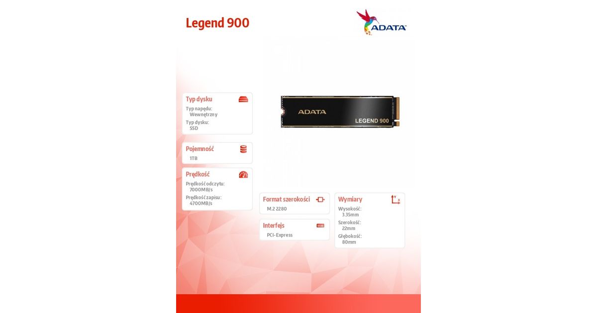 SSD drive Legend 900 1TB PCIe 4x4 7/4.7 GB/s M2