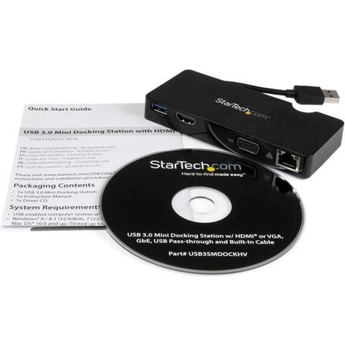 StarTech.com USB3SMDOCKHV, Langallinen, USB 3.2 Gen 1 (3.1 Gen 1) Type-A, 10,100,1000 Mbit/s, 10BASE-T,100BASE-TX,1000BASE-T, IEEE 802.3,IEEE 802.3ab,IEEE 802.3u, Musta
