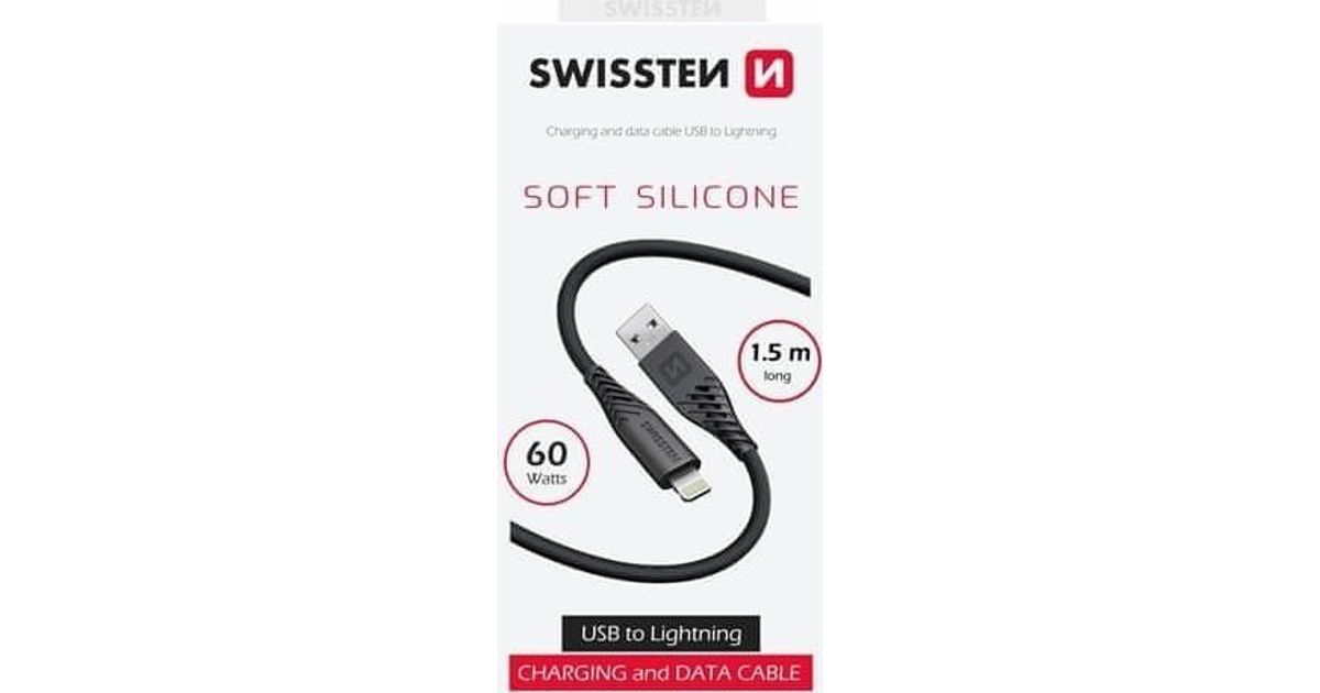 Swissteni andmekaabel pehme silikoon USB / Lightning 1,5 M 60 W must