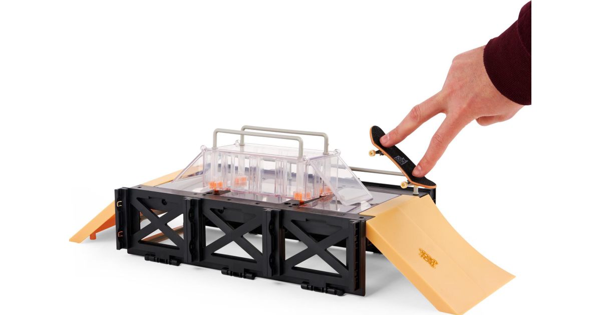 | Pakkauksen sisältö | 1 Tech Deck Fingerboard, 1 Play and Display Case, 1 Hinged Box, 2 Swinging Kickers, 4 Vertical Connectors, 1 Right Double Slope Kick, 1 Left Double Slope Kicker, 2 Tall Rails, 1 Long Rail, 1 Instruction Sheet |