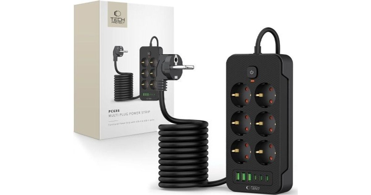 Tech-Protect TECH-PROTECT PC6X6 POWER STRIP toiteriba 3 USB & 3 TÜÜP-C & 6 SOCET 200CM MUST