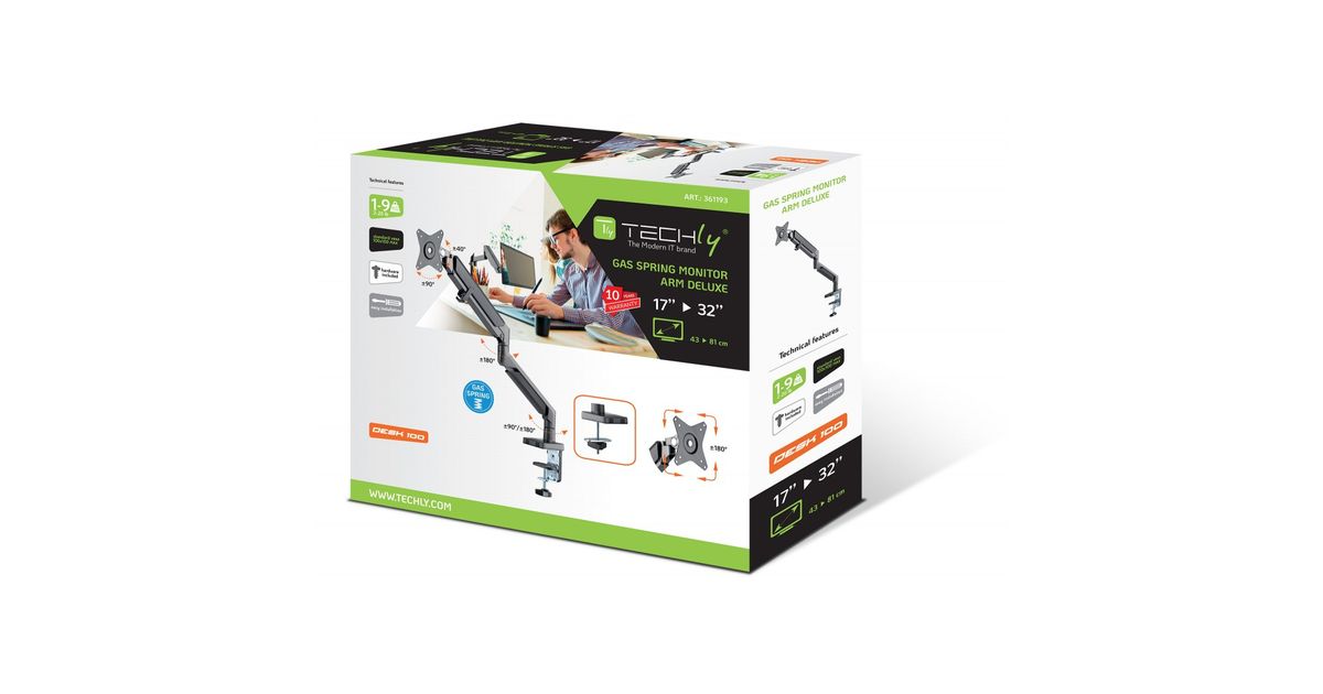 Techly ICA-LCD 3712, Puristin, 9 kg, 43,2 cm (17"), 81,3 cm (32"), 100 x 100 mm, Harmaa