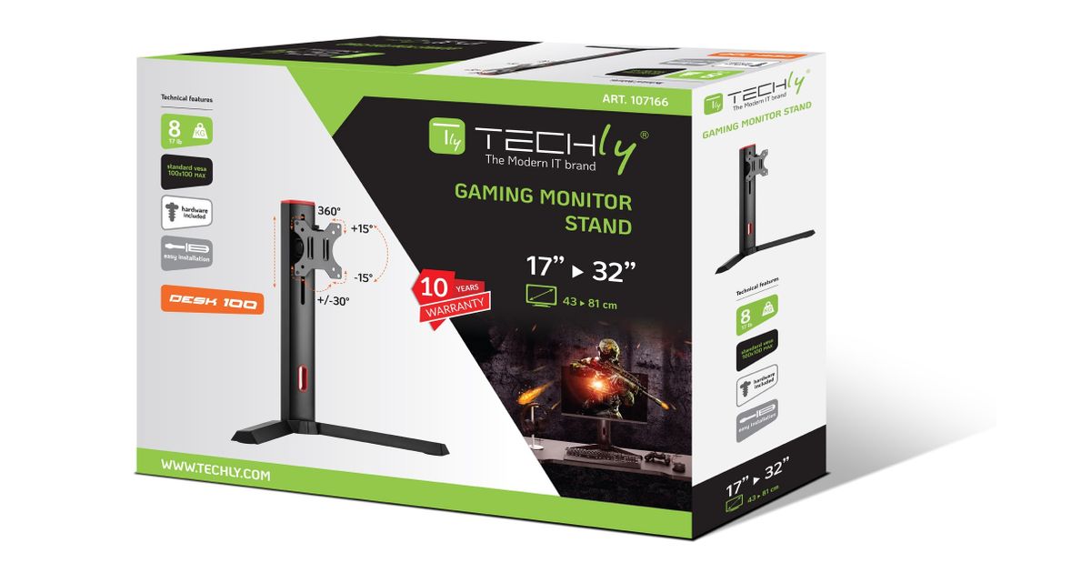 Techly ICA-LCD G32, Vapaasti seisova, 8 kg, 43,2 cm (17"), 81,3 cm (32"), 100 x 100 mm, Musta