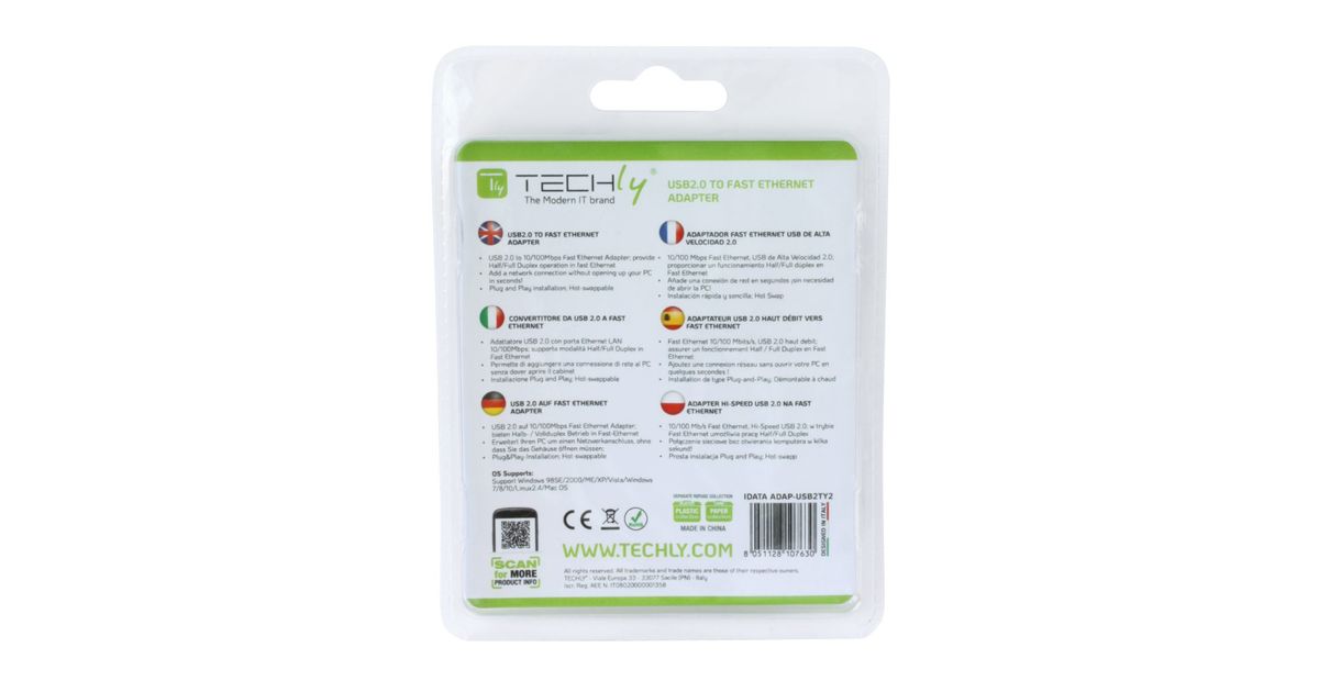 Techly IDATA ADAP-USB2TY2 verkkokortti Ethernet 100 Mbit/s