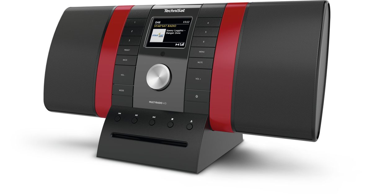 TechniSat MULTYRADIO 4.0, Kodin miniaudiojärjestelmä, Musta, Punainen, 20 W, DAB+, FM, PLL, UHF, 87,5 - 108 MHz, Spotify
