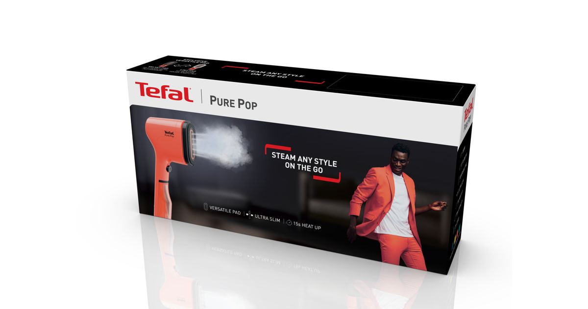 Tefal Pure Pop DT2022, Kannettava vaatehöyrystin, 0,07 L, 0,25 min, Koralli, Painikkeet, Käsikytkin