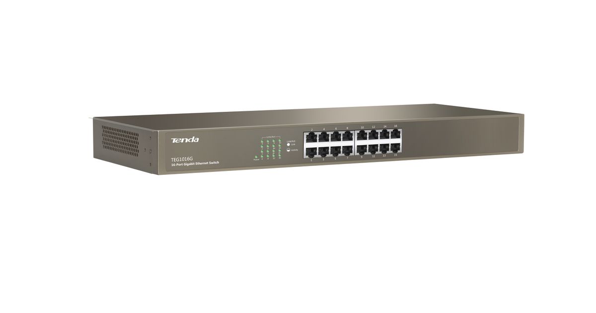 Tenda TEG1016G, Hallitsematon, Gigabit Ethernet (10/100/1000), Täysin kaksipuolinen, Telineasennus, 1U