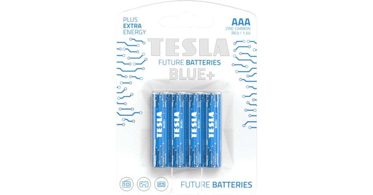 Tesla Tesla sinine tsingi süsinik AAA akud (R03, Mikrotužková, Blister) 4 Ks