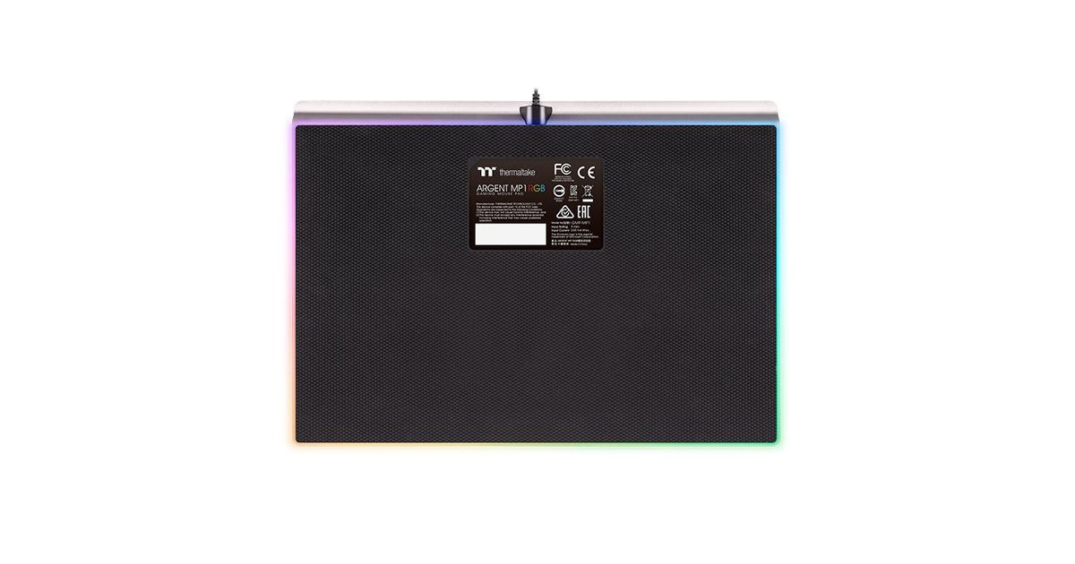 Thermaltake Argent MP1 RGB, Musta, Titaani, Yksivärinen, Alumiini, Kumi, USB-virta, Liukumaton pohja, Pelihiirimatto