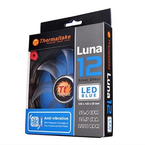 Thermaltake Luna 12 LED Blue, Tuuletin, 12 cm, 1200 RPM, 20,7 dB, 50,44 cfm, Musta, Läpikuultava