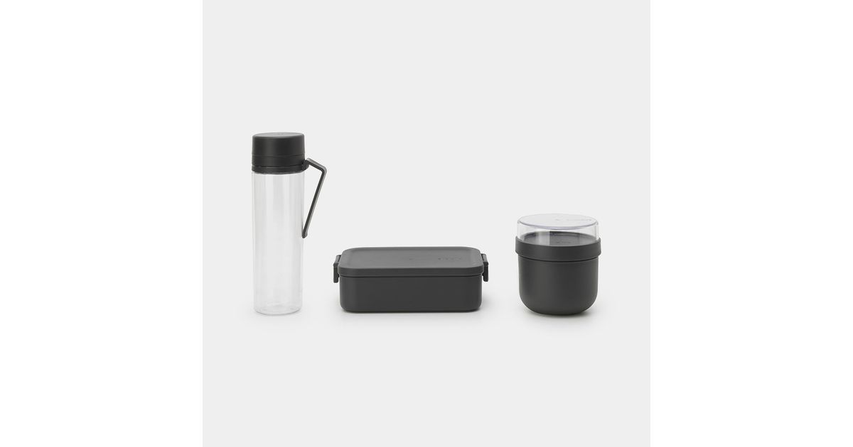 Toidukarpide hommiku -ja lõunakomplekt Make & Take, plastist, tume hall (veepudel, kauss ja Medium toidukarp) - Astiat - Ruokasali - Koti - MT Shop