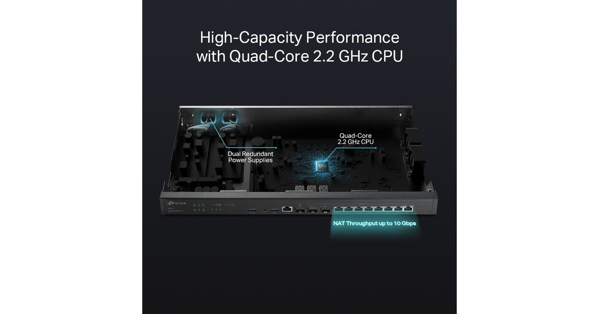 TP-Link ER8411, Ethernet WAN, Gigabitti Ethernet, Musta