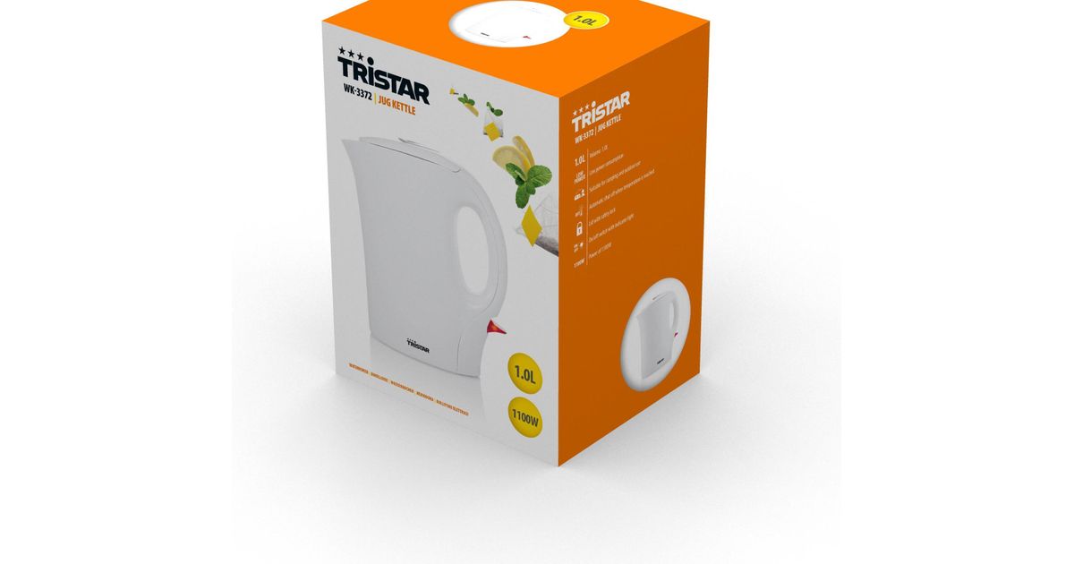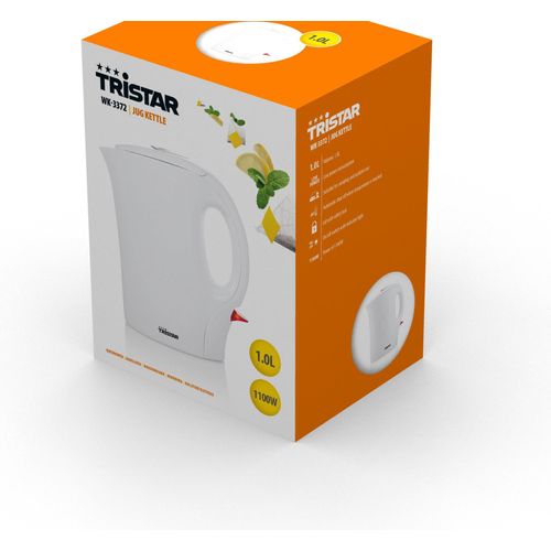 Tristar WK-3372, 1 L, 1100 W, Valkoinen, Muovi, Veden tason ilmaisin, Ylikuumenemissuoja