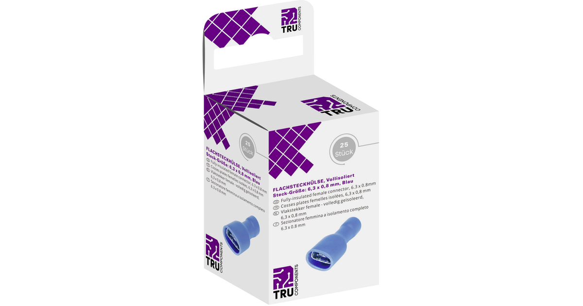 Tru Components T1904C118 Blade Receptacle Set Connector Width: 6.30 Mm Connector Thickness: 0.80 Mm 180 ° Insulated Blue 25 Pc(S)