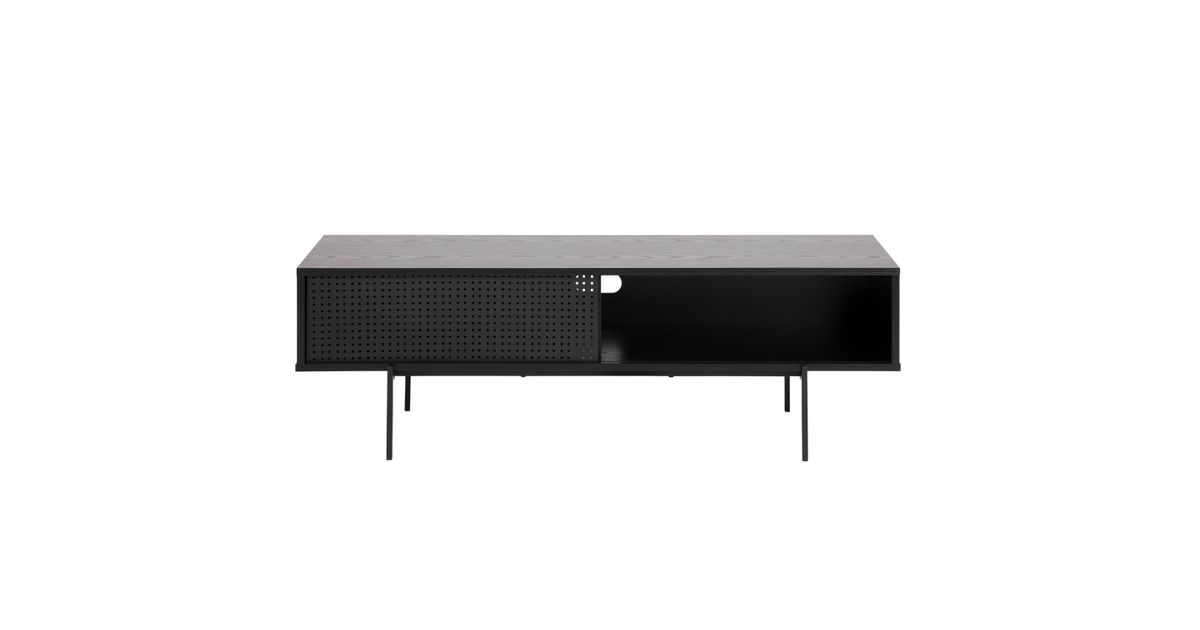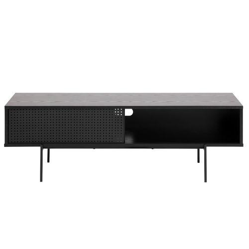 TV-laud ANGUS 140x40xH44cm, 1-liuguksega. Lauaplaat: must saare melamiin, raam: must metall.