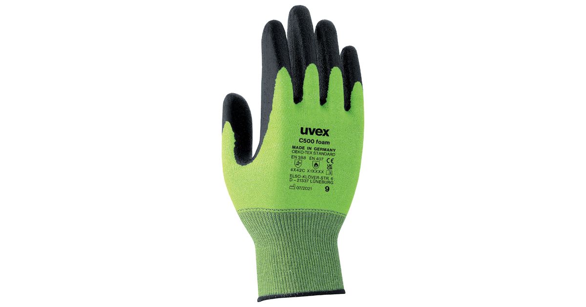 Uvex C500 foam Musta, Vihreä Polyeteeni, Viskoosi, Polyamidi, Lasikuitu 1 kpl