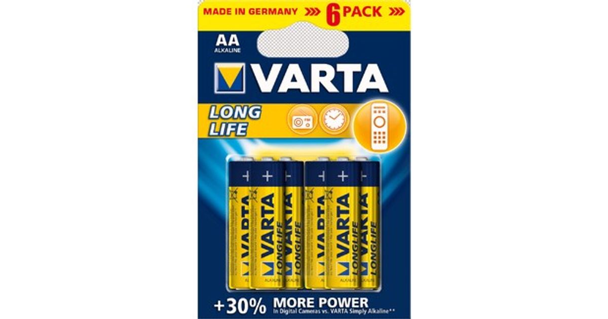 Varta 4106, Kertakäyttöinen akku, AA, Alkali, 1,5 V, 6 kpl, Sininen, Keltainen