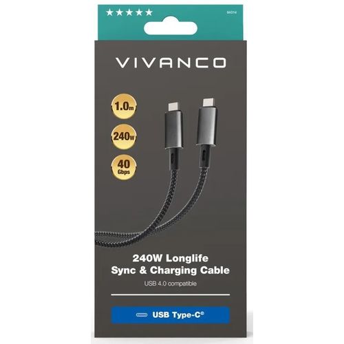 Vivanco kaabel USB-C - USB-C 4.0 LongLife Charging 240W 1m (64014)