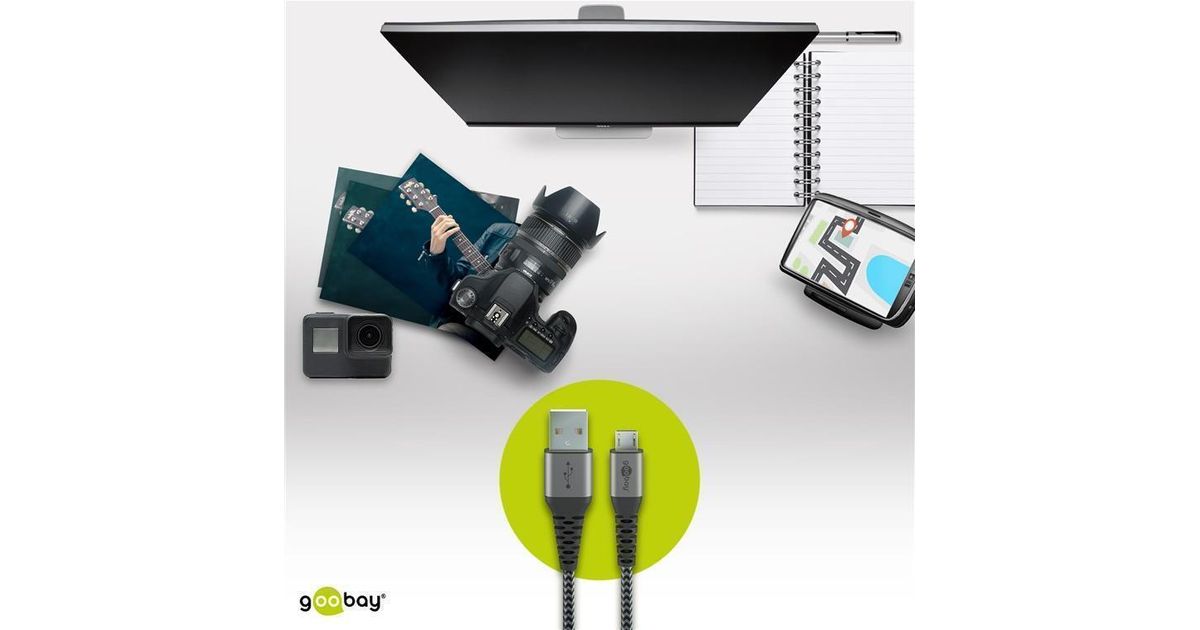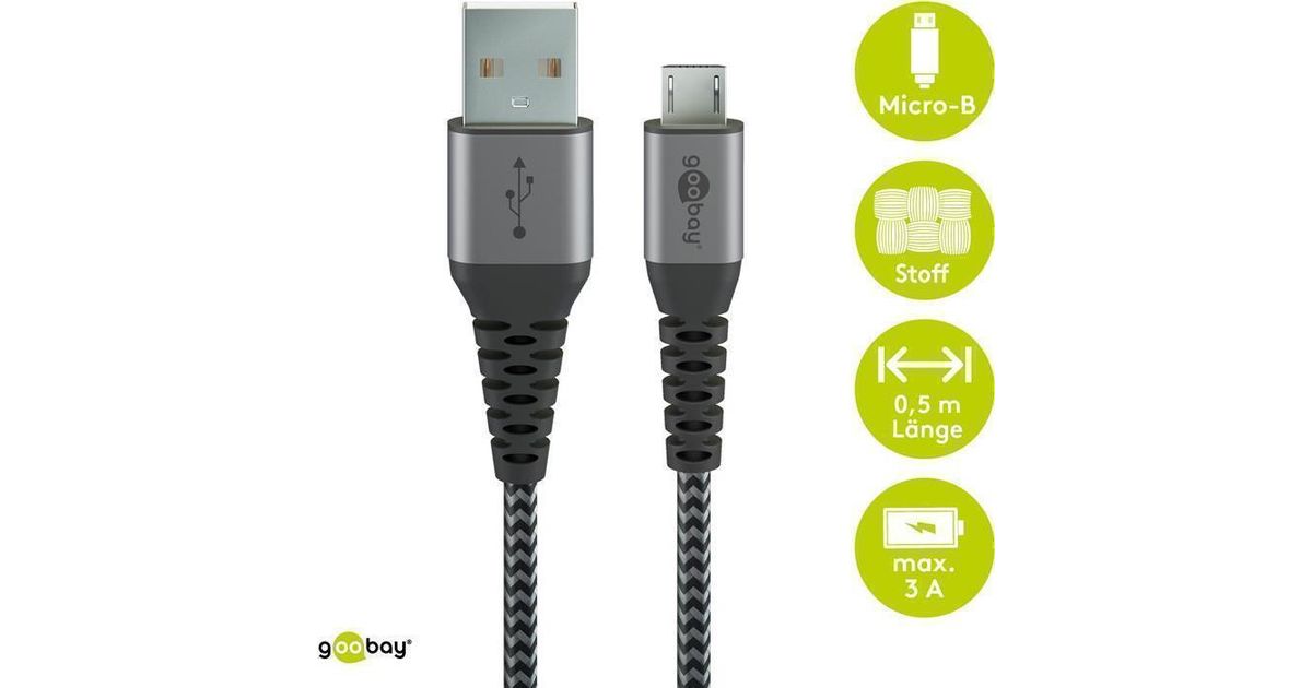 Wentronic 49283 USB-kaapeli 2 m USB 2.0 Micro-USB B USB A Musta, Harmaa