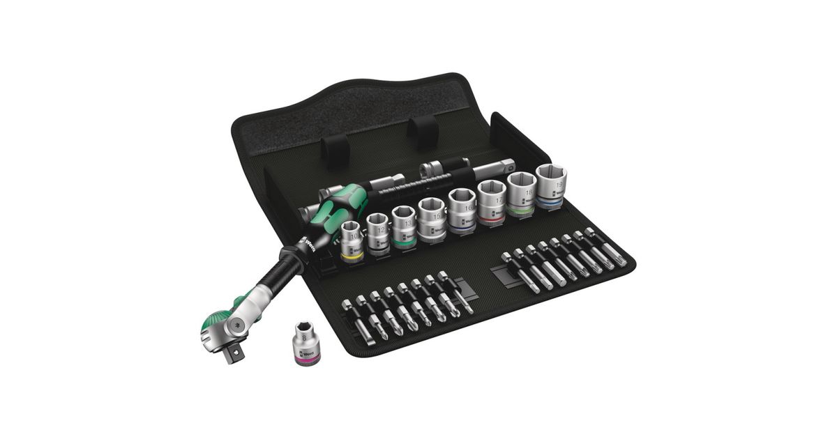 Wera 8100 SB 6, Hylsyavainsarja, Musta, Kromi, Vihreä, CE, Hylsyavaimen kahva, 1 kpl, 3/8"